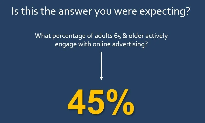 Sometimes when we review our research data, the statistics are very predictable, and other times we are very surprised. Take the demographic Adults age 65 and older. Is that your target market? Have you put any thought into that market? Or are they only to be targeted for Senior Living Facilities and high protein drinks? I think not!